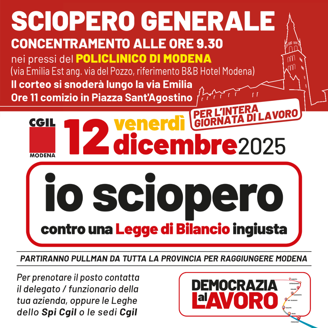 Si comunica che per l’intera giornata del 12 dicembre 2025 è previsto uno sciopero generale.